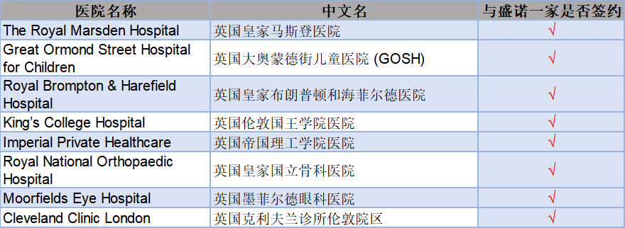 截至目前,盛诺一家已与超过15家英国头部医院签署正式合作转诊协议。